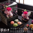 母の日ギフト 和風プリザーブドフラワー(カーネーションアレンジ)&ひとくち上生菓子セット「夢窓佳(ゆめまどか)」 クリア箪笥箱入り 送料無料